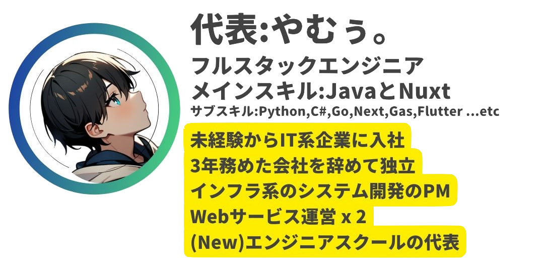 現役でエンジニアをしている「やむぅ。」が講師としてプログラミングとエンジニアについて教えます。